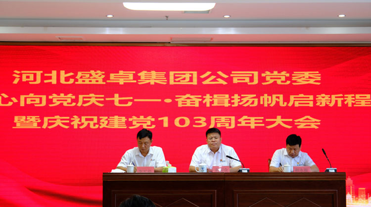 為慶祝中國(guó)共產(chǎn)黨成立103周年,7月1日上午,河北盛卓集團(tuán)公司黨委組織全體共產(chǎn)黨員、入黨積極分子、全體管理人員、職工代表200余人,隆重舉辦“同心向黨慶七一,奮楫揚(yáng)帆啟新程”暨慶祝建黨103周年黨員大會(huì)。會(huì)上,首···